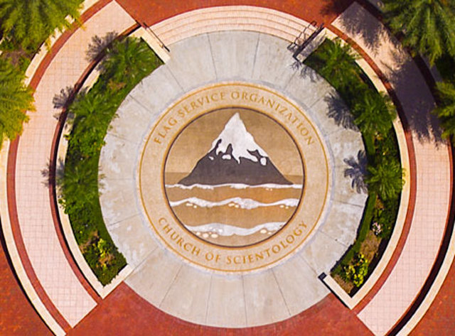 Over 100 hand-crafted stone medallions are inset into the floors of the Flag Building. These masterpieces are created using detailed drawings and waterjet technology to allow the inlay of polished Dark Emperado marble to fit precisely—putting Scientology symbology into the very fabric of the building itself.