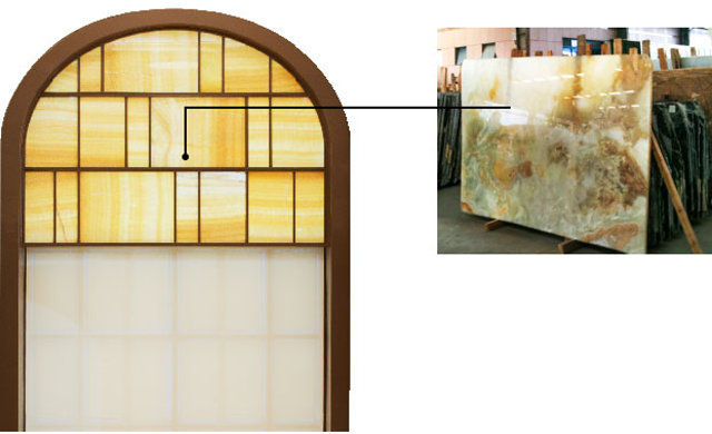 The Atrium and Chapel both feature stone windows made of onyx, cut so sheer that the light shines through. They were originally designed as resin panels, but the contractor substituted the materials with onyx stone as their own contribution to this architectural masterpiece of a building.
