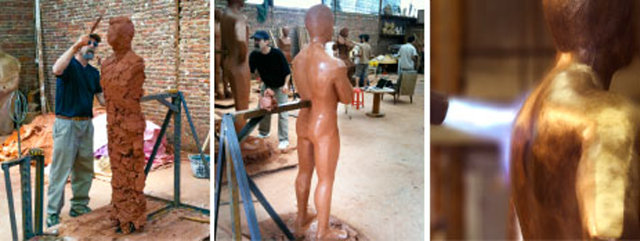 Creating the sculptures was a story in itself. Over the course of a year, artisans spent 25,000 man-hours to produce the pieces. Each was cast using the centuries-old lost-wax technique, a 15-step process that starts from a full size clay model and then moves through rubber, wax and porcelain molds, culminating in a molten bronze pour, heated to 2,200 degrees Fahrenheit.