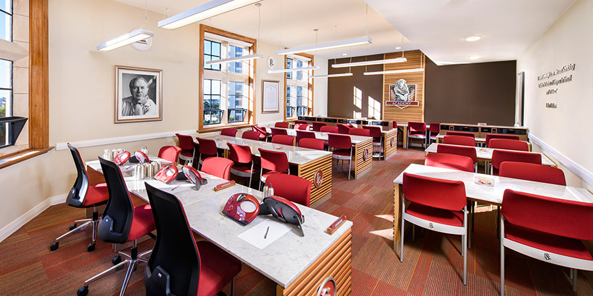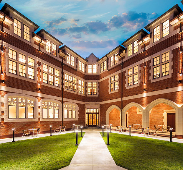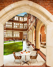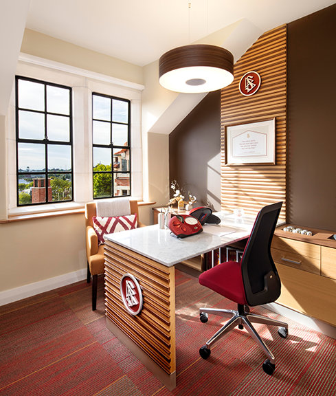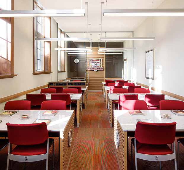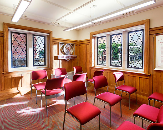 From the red brick and white Oamaru stone fabric used across the façade, to the restoration of delicately finished oak in the entrance hall and library and preservation of rimu timber paneling and jarrah wood flooring, she noted, the work has set the facility apart as a work of art itself.