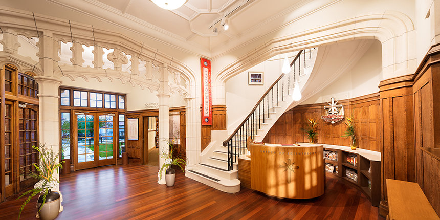 Overlooking the city and Auckland’s magnificent Waitemata Harbor, the local historic site and cherished landmark, preserved and restored beautifully by the Church in cooperation with local architects and preservationists, is a resurrection of what was once home to spiritual training for clergy and religious scholars for nearly a half century.