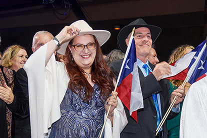 “There is one last story still waiting to rise,” Mr. Miscavige continued, before the Shrine erupted in a crescendo of celebration as he unveiled the forthcoming Ideal Org in Puerto Rico. Salsa music next lifted the night, as a cinematic preview of the dazzling new building in the heart of San Juan sparked a wave of Puerto Rican flags across the auditorium. The historic ribbon-cutting, heralding the first Ideal Org for the Caribbean, is set to take place in the coming weeks.