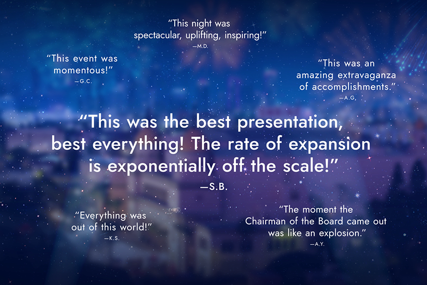 As the dawn of a new year beckons, the exhilarating evening draws to a stirring conclusion with an inspiring grand finale as Mr. Miscavige delivers his closing message.